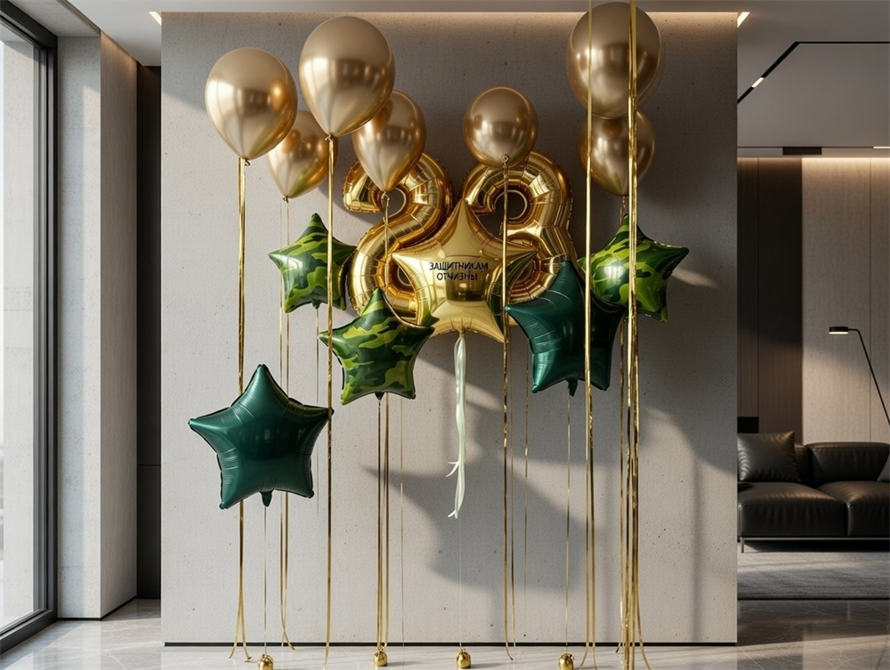 10 воздушных шаров под потолок + 2 Цифры + 6 Звезд на 23 февраля №653а