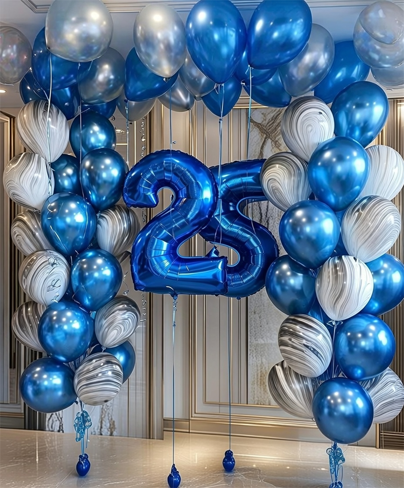 2 фонтана по 22 воздушных шаров + 20 воздушных шаров под потолок + Цифра (2шт) №207а