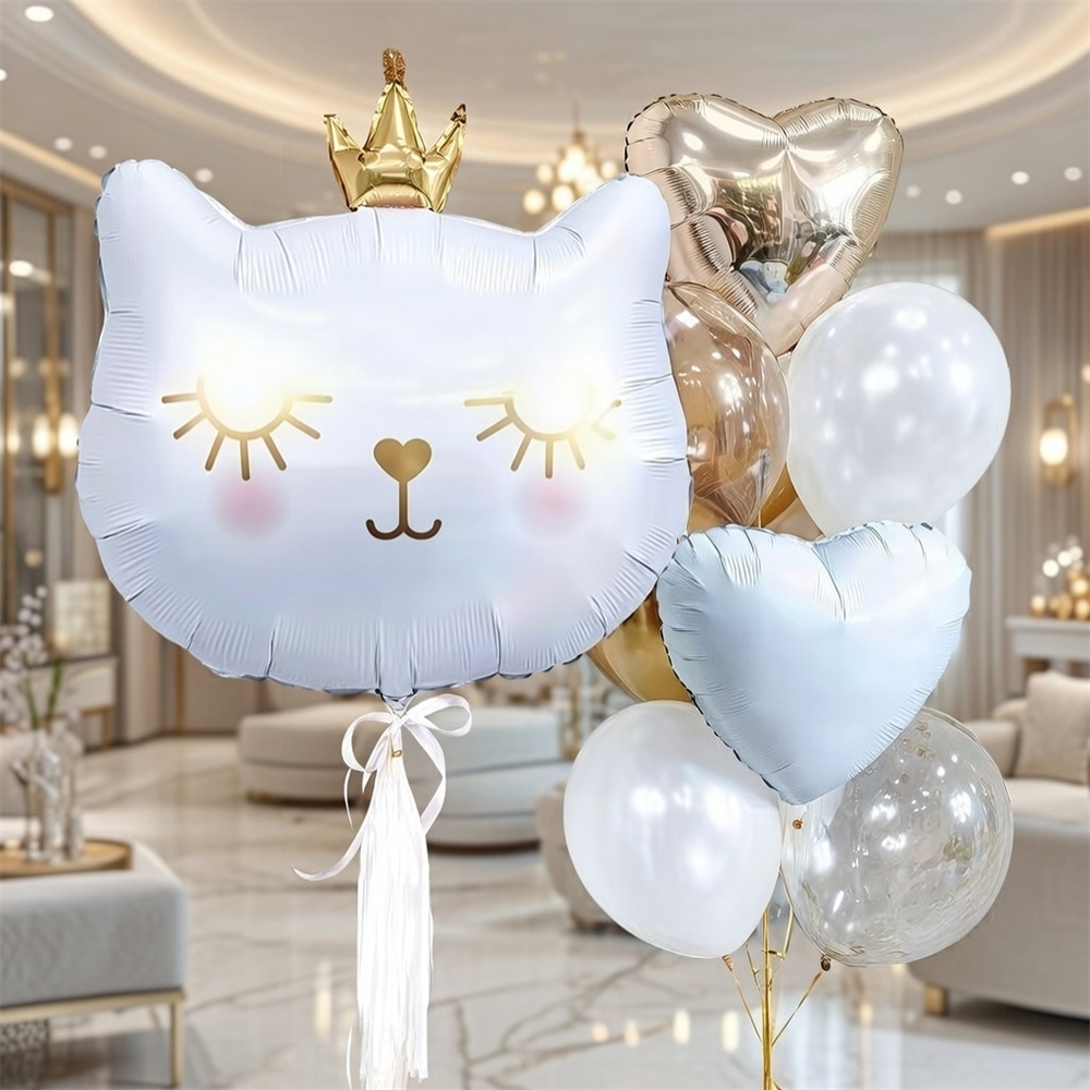 Фонтан из 10 воздушных шаров + Голова Кошки №212а