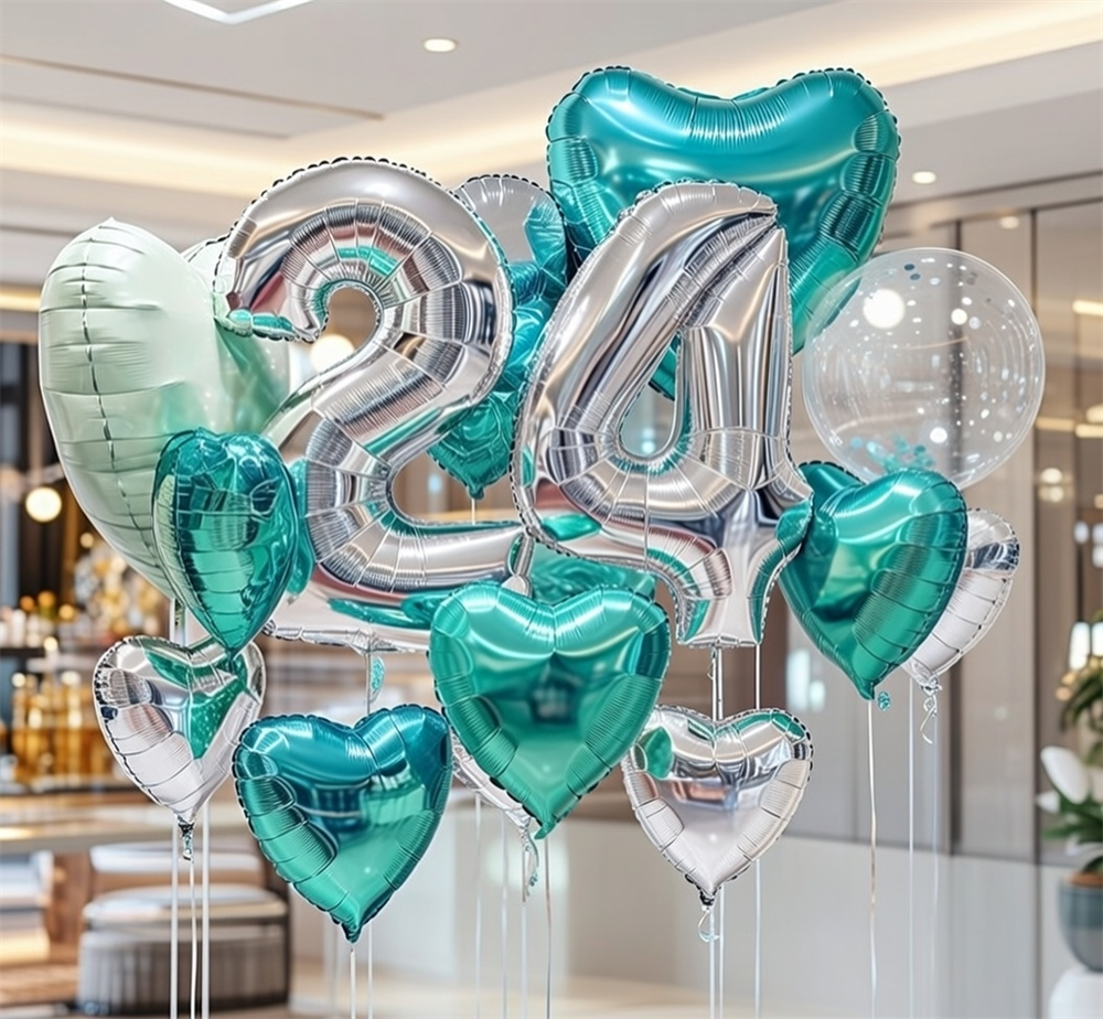 Набор из 12 воздушных Сердец + Цифра (2шт) + Шар Гигант с перьями №208а