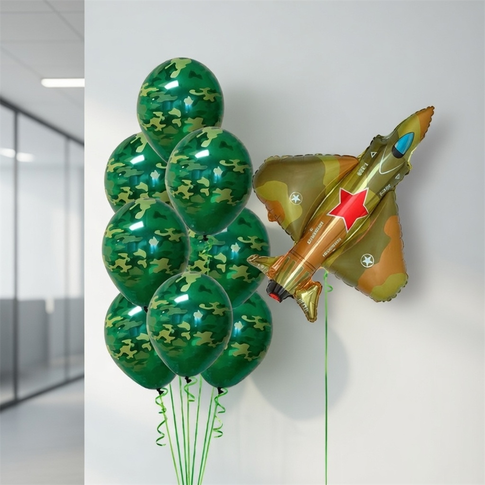 Фонтан из 10 воздушных шаров + Самолет на 23 февраля №6 (комплект)