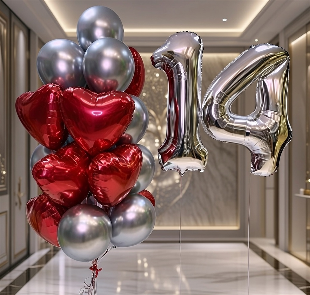 Набор шаров для влюбленных №29 Фонтан из 17шаров+ две цифры (66см) на грузе (комплект)
