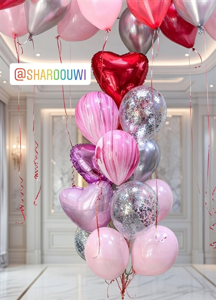 Набор шаров для влюбленных №47 Фонтан из -15шаров на грузе (комплект)