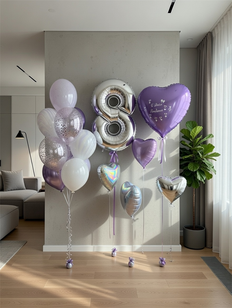 Набор воздушных шаров фонтан + Сердца + Цифра №578а