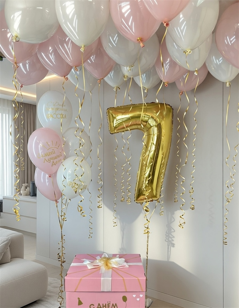 Набор воздушных шаров под потолок с коробкой + Цифра №531а