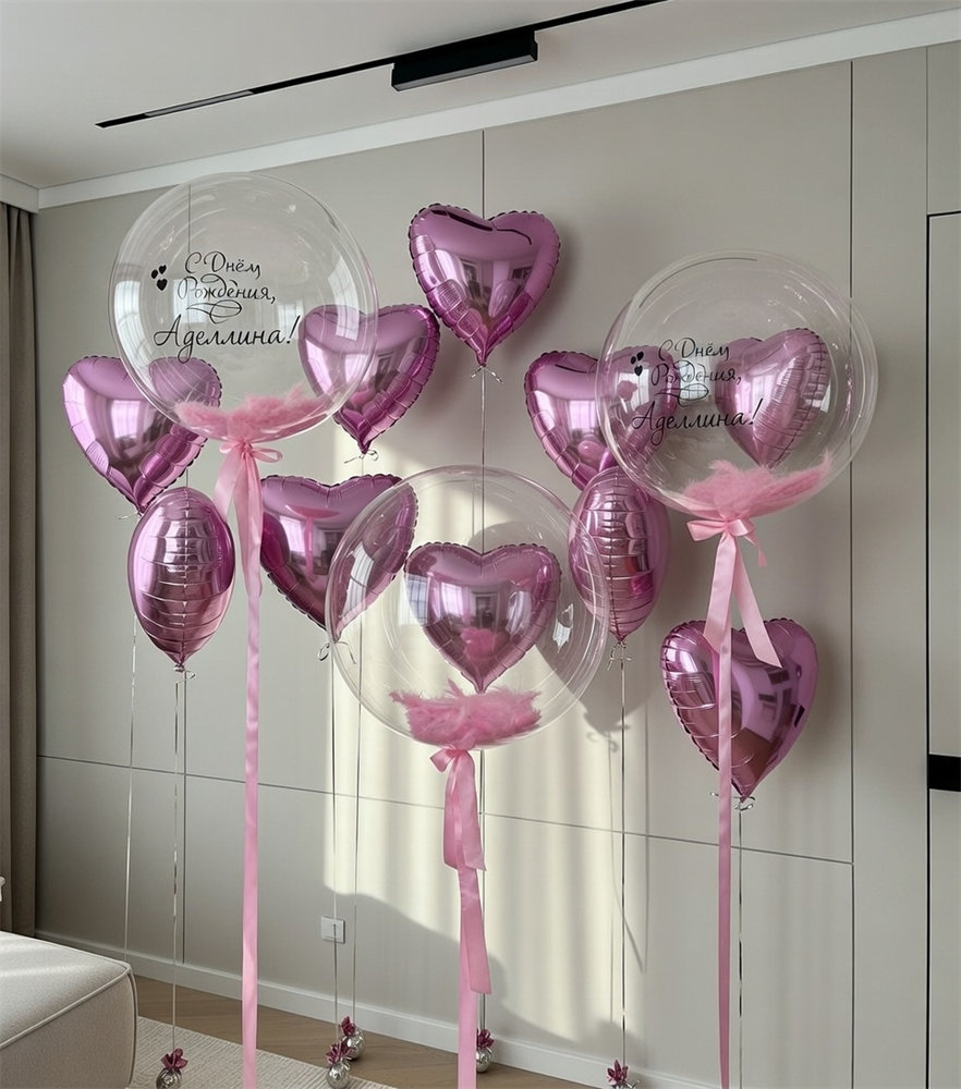 Набор воздушных шаров сердца + большые прозрачные шары с перьями №535а