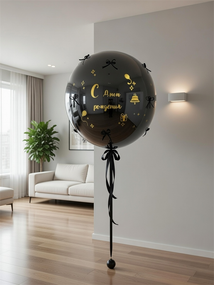 Шар Гигант черный 60-70см с надписью С Днем Рождения! (любая ваша индивидуальная надпись)