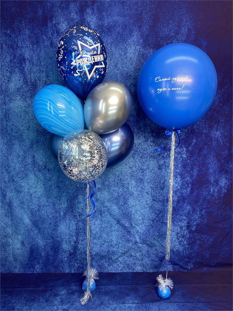 Фонтан из 7 воздушных шаров + Шар Гигант "стеклянный" с надписью в асс №597а