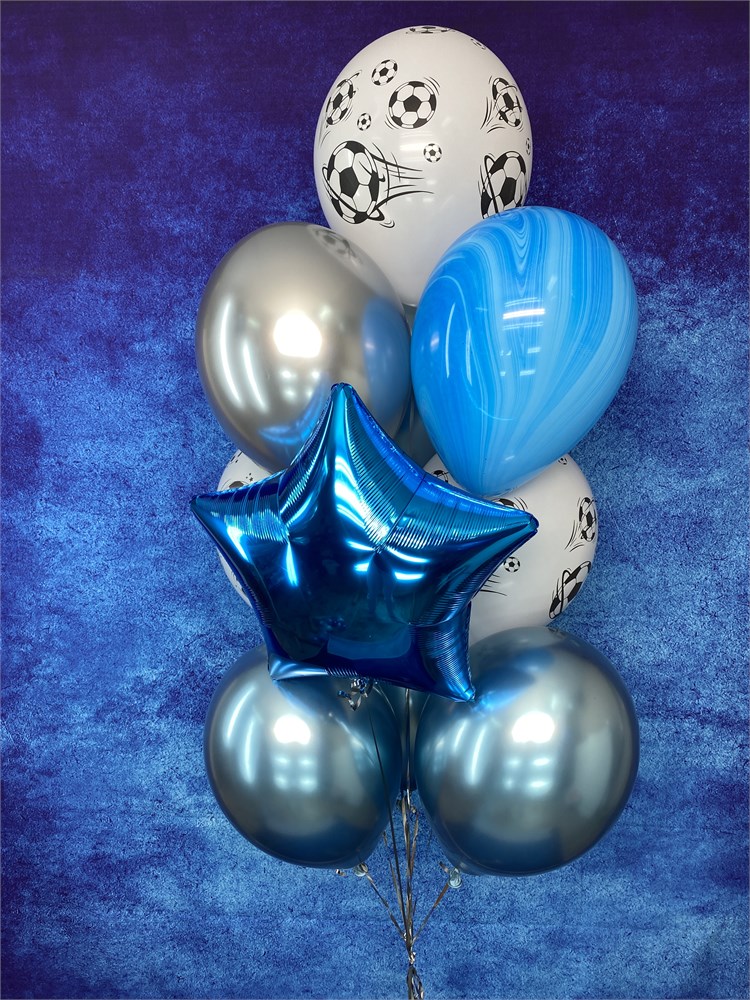 Фонтан гелиевых футбольных шаров со звездой 10шт №543а