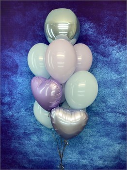 Фонтан из 10 гелиевых шаров с сердцами и сферой №556а