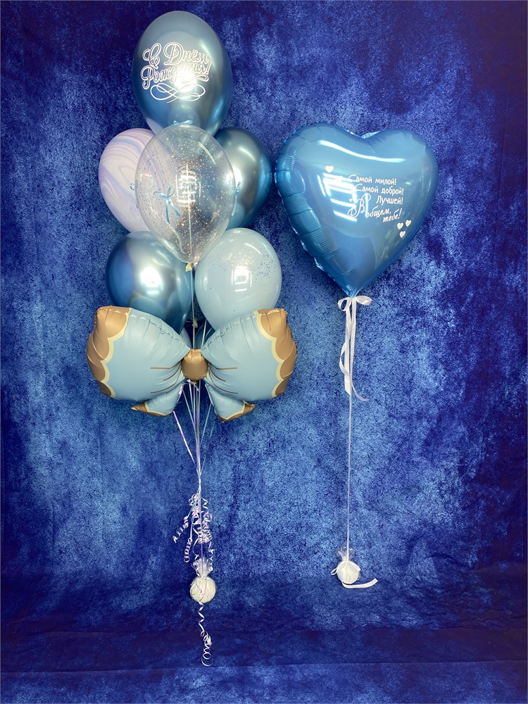 Фонтан из 10 воздушных шаров + Сердце с индивид надписью №602а